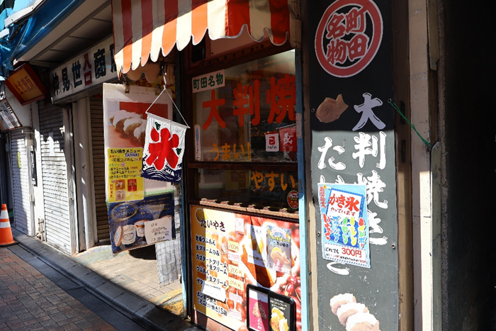 たい焼き・大判焼きと和菓子の店マルヤ製菓は、JR町田駅から徒歩5分ほどに位置する仲見世通りの入り口にある。
